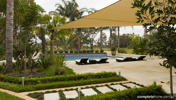 To add a newer, contemporary look to the large outdoor area surrounding the pool, Design Pools also created a stunning water feature, tiled and granite planter boxes and an outdoor living cabana.
