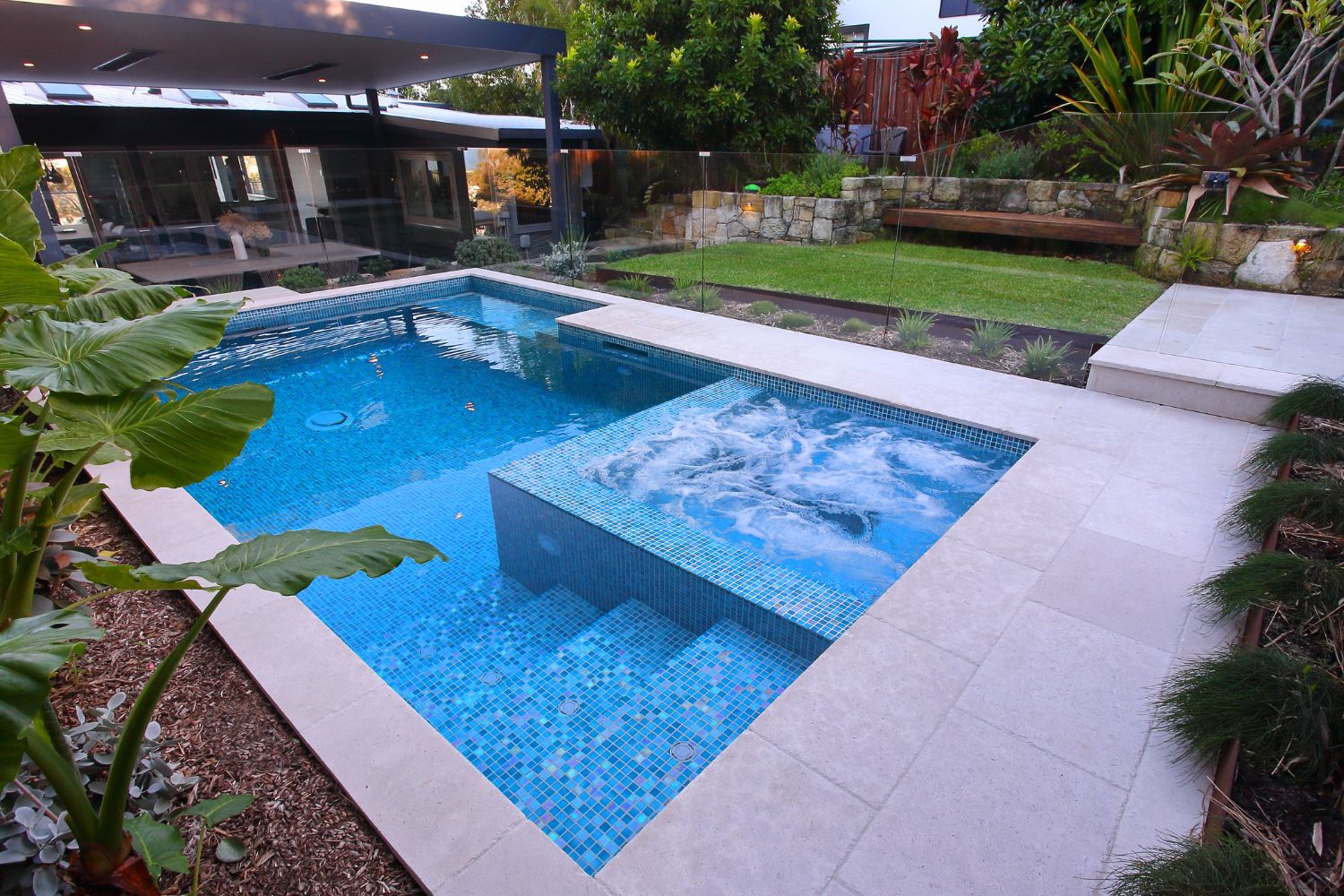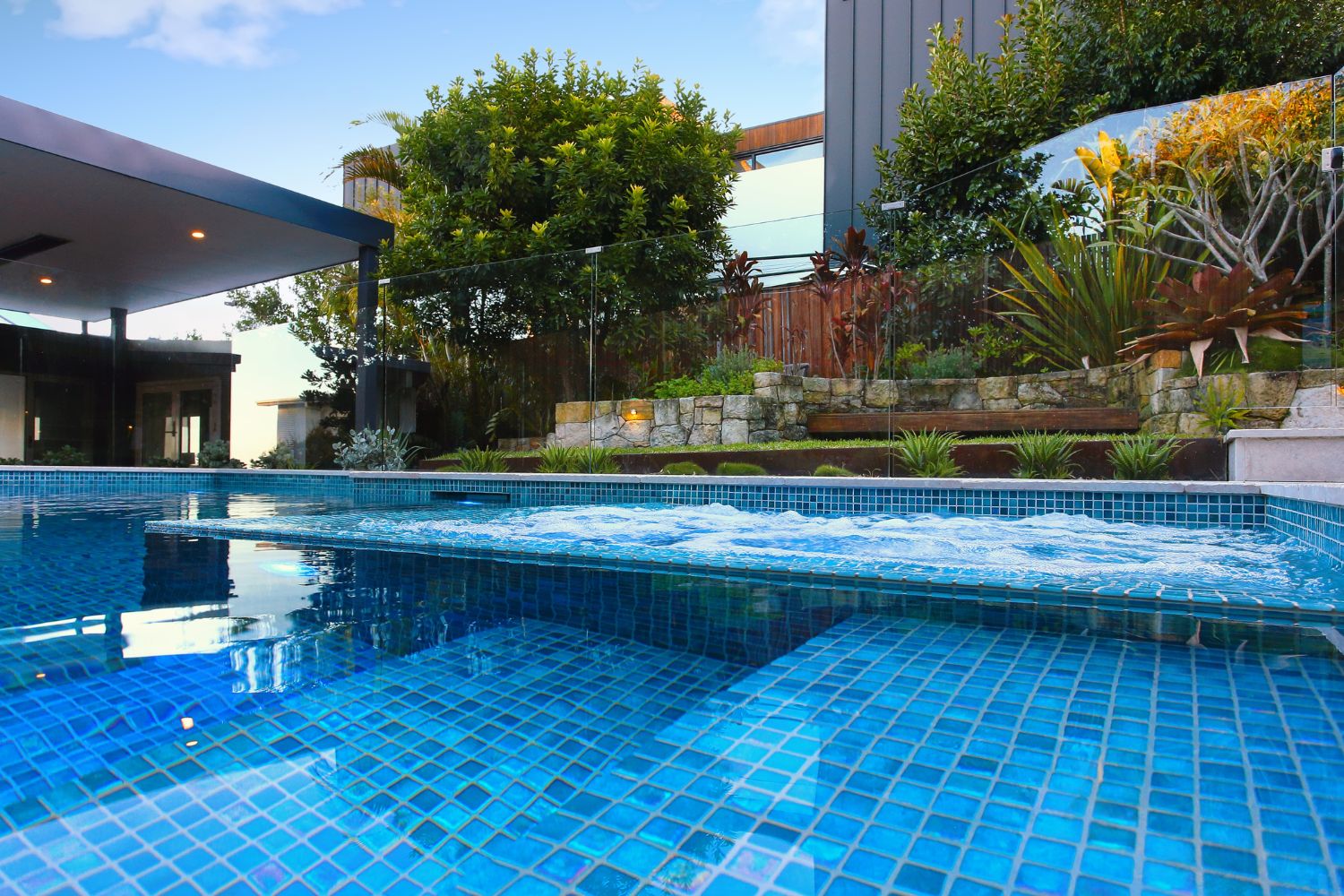 A sculptural, fully tiled pool brings contemporary ease to a compact Curl Curl setting