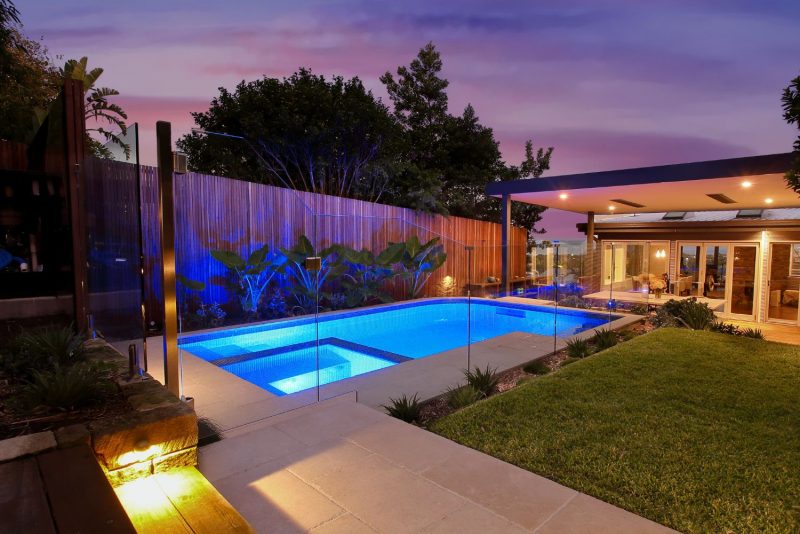 The pool sits seamlessly within the broader landscape, which was also designed and delivered by Urban Escape. A combination of spotted gum decking, timber fencing and layered planting softens the architecture and creates privacy, while frameless glass fencing maintains visual openness and a strong connection to the surrounding garden.