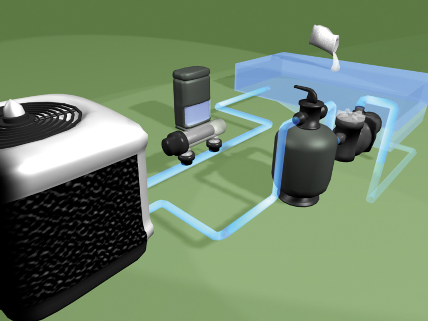 A Waterco salt water chlorinator is typically plumbed directly in-line with the pool equipment, typically after the heater.