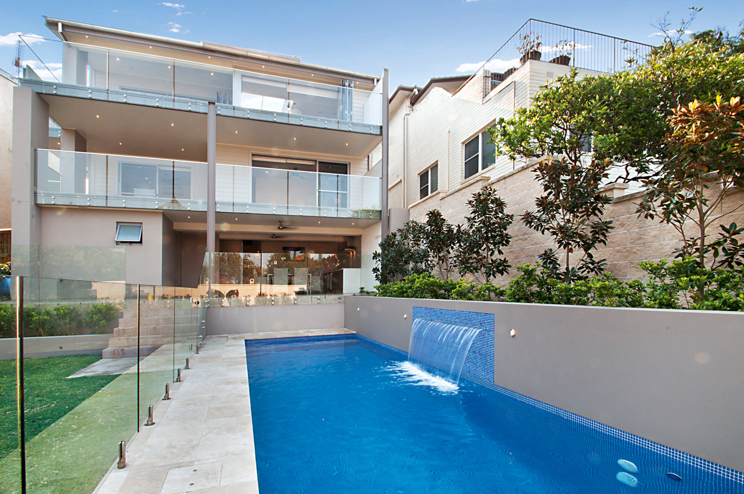 By incorporating an alfresco into the design, the company maximised room for the pool and provided shade around the dining area to ensure the space can be used all year round. The elevated alfresco features an outdoor kitchen complete with barbecue, sink and drinks fridge.