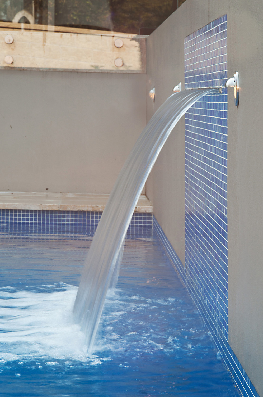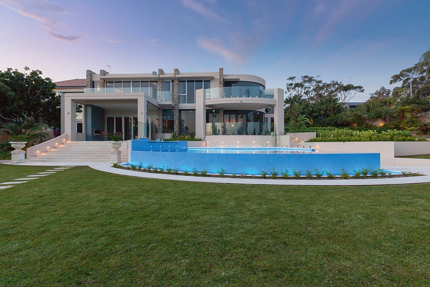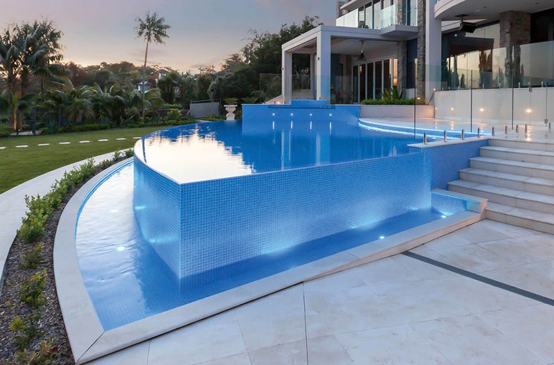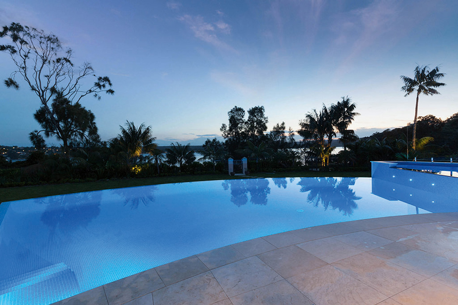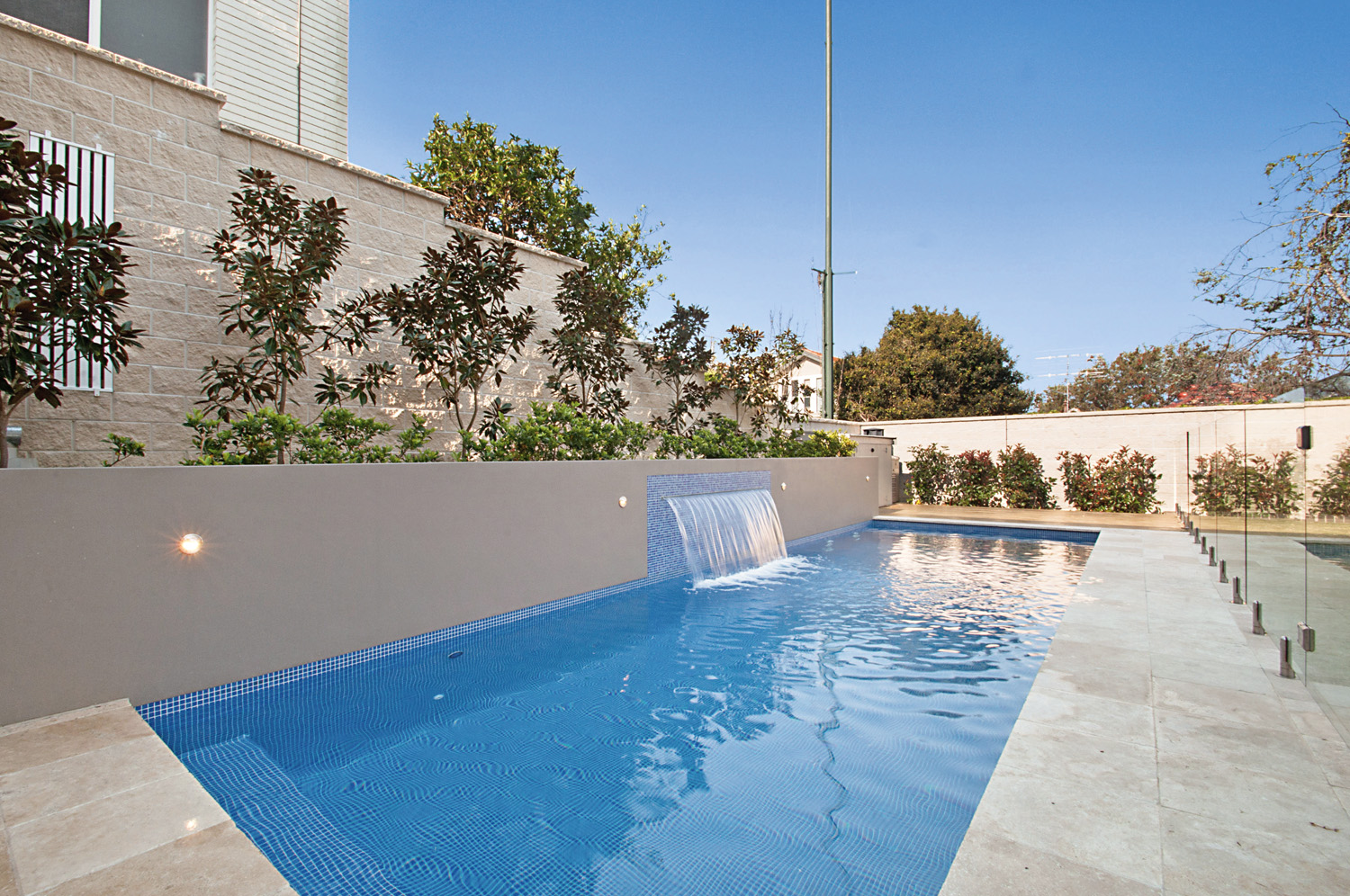 Completing the impressive aesthetic, travertine paving was laid throughout the alfresco and around the pool. The striking light colour of the tiles complements the pool’s blue interior, ensuring it’s the focal point of the backyard.