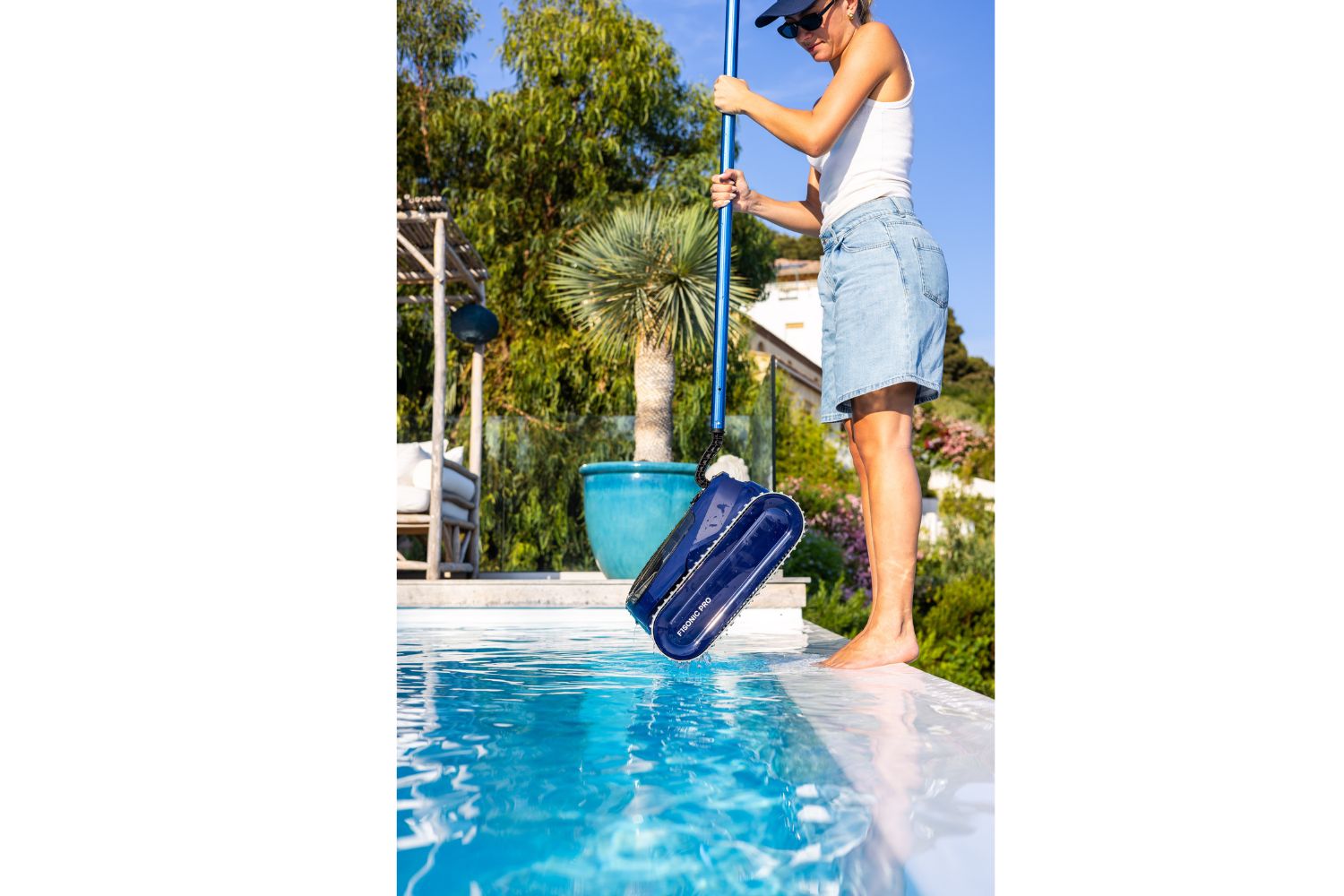No more wrestling with a wet robot at the poolside. Thanks to the SmartPark function, this cordless cleaner automatically parks itself by a pool wall at the end of each cleaning cycle, ready for effortless retrieval with the included hook.