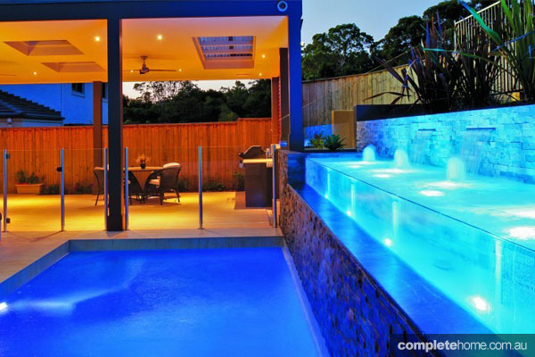 Certainly not for a shy swimmer, using a glass wall on a raised pool is a stunning and effective design. This definitely lets the pool become a feature of any outdoor design.