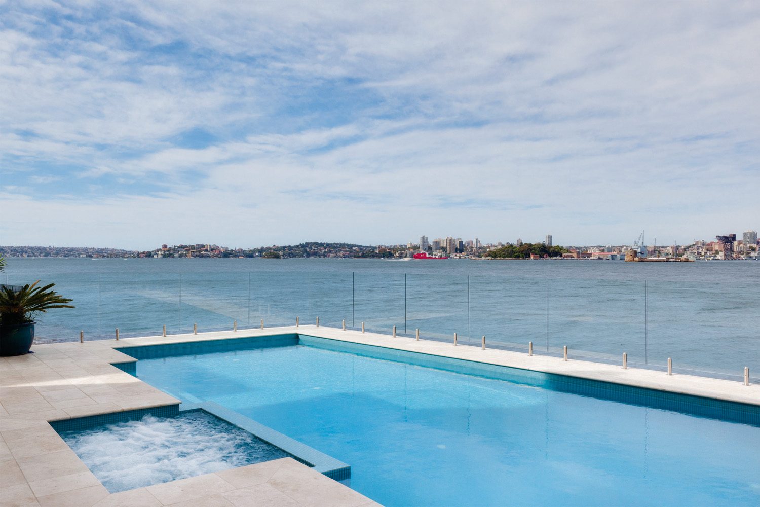 This gorgeous property has views of the Sydney harbour, right on the water. And in the water with this simple and effective pool design