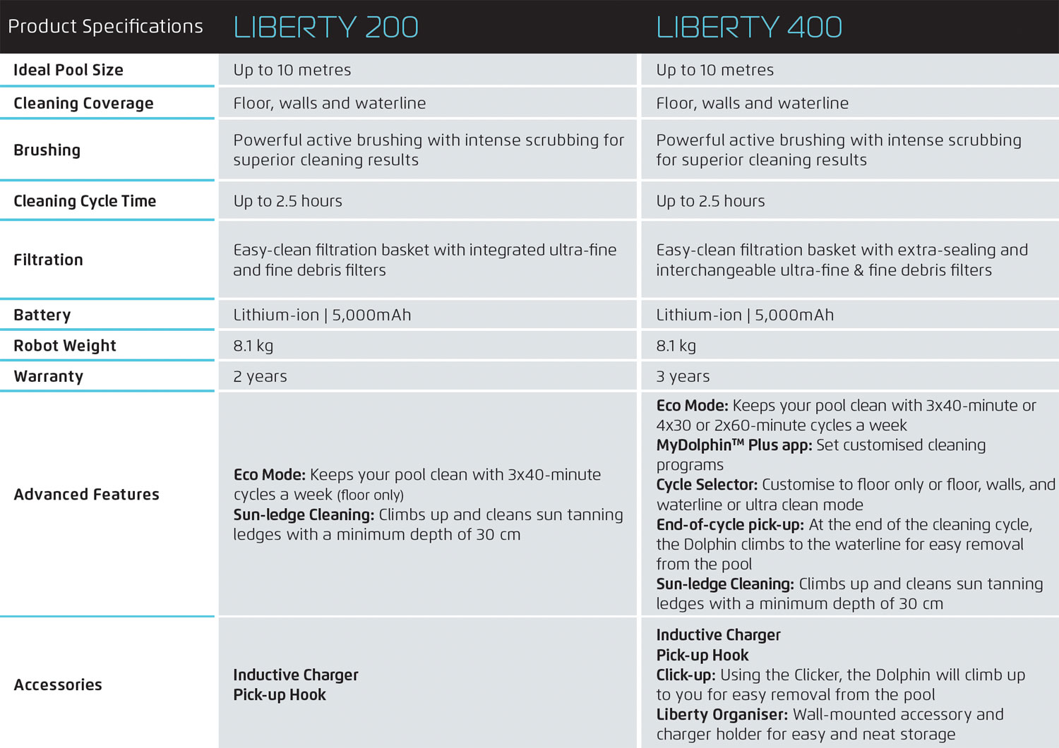 Key features of the Dolphin Liberty Cordless Pool Cleaners