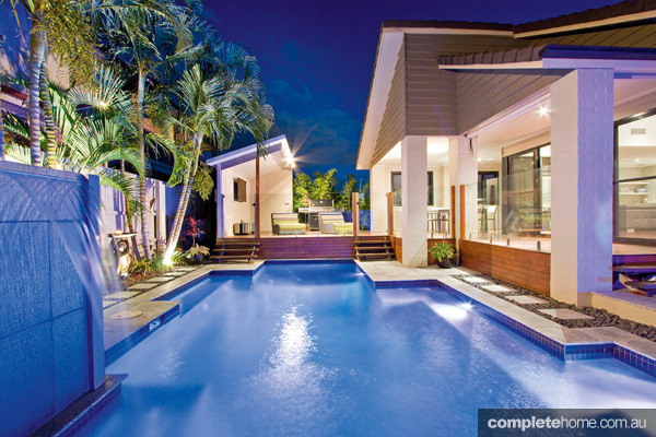 “This pool demonstrates how you can use clever and eye-catching lines, as opposed to doing the unforgivable and plonking a rectangular pool with a feature wall into the yard,” says Andrew Jakovac, director of Majestic Pools and Landscapes. Multiple coves and areas in and around the pool were also incorporated.