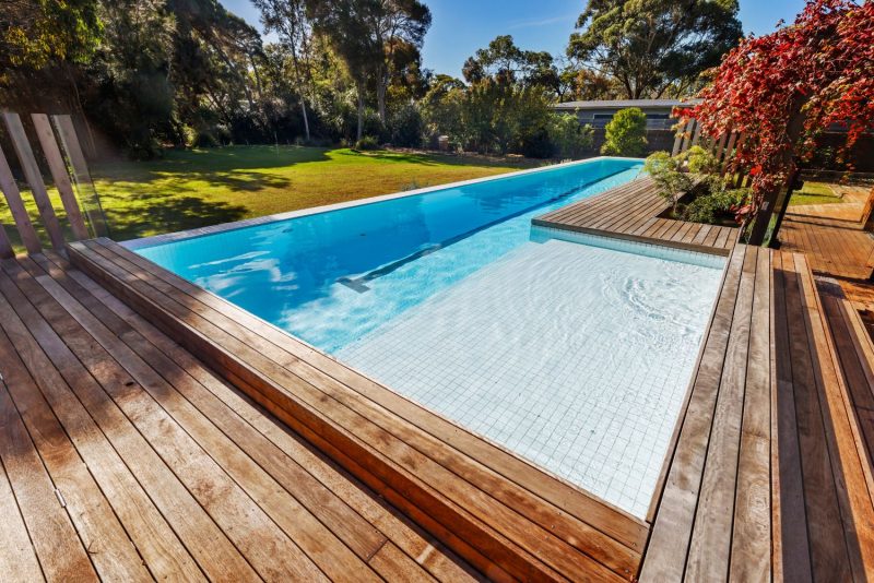 Pool owners are increasingly opting for customisable, shimmering finishes that change in appearance depending on the angle of the light. Iridescent finishes or a mix of light and dark blues, greens or metallics add dimension and depth to the pool, creating a unique visual experience.