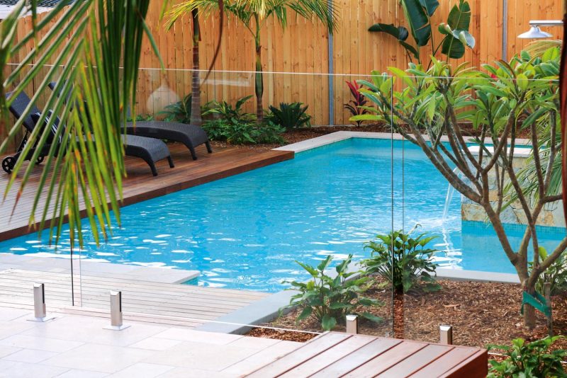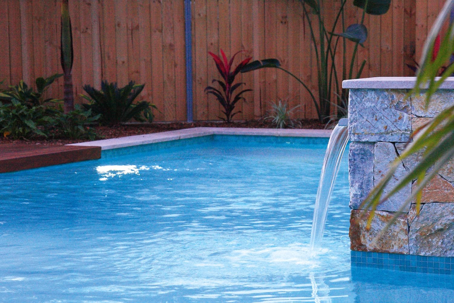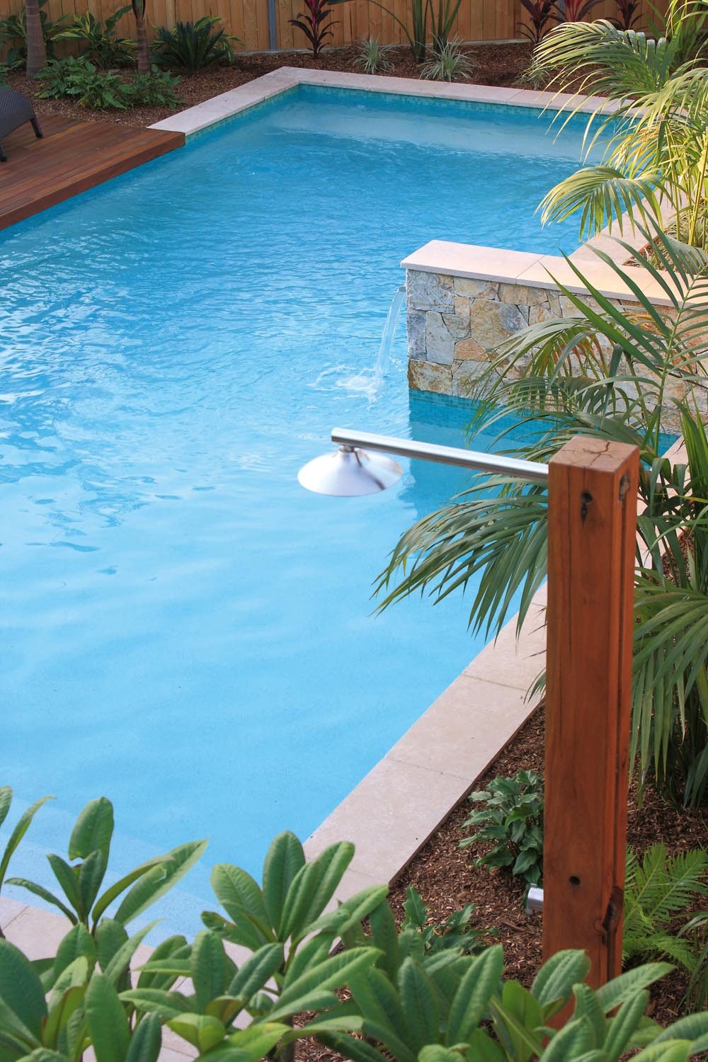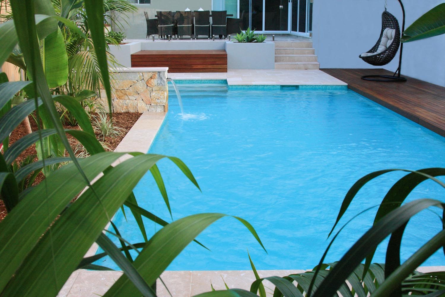 The clients, a couple who work long hours, requested an outdoor area where they could relax and unwind with their children in an environment that boasted a wow factor. A contemporary design using natural and timeless materials, including stone and hardwoods, gives this tranquil poolscape an earthy sophistication. The rectangular pool is 9m x 4m and makes great use of what was once wasted space.