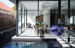 Integrated Pools by Canny worked its expert recommendations seamlessly into the client’s brief to create this aesthetically pleasing masterpiece. This stimulating job had wow factor from its inception thanks to an exciting brief from a client with a growing family. The pool is uniquely positioned at the fence line, giving an impression that the backyard is bigger than it actually is, thereby enhancing the impact of the outdoor space.