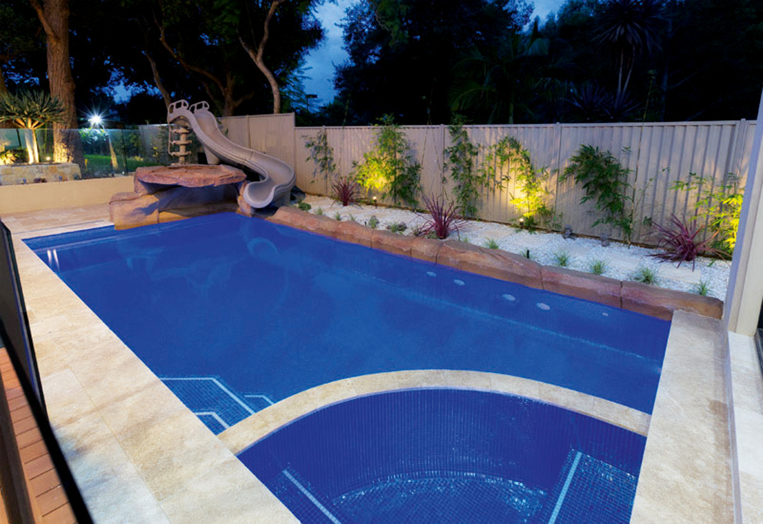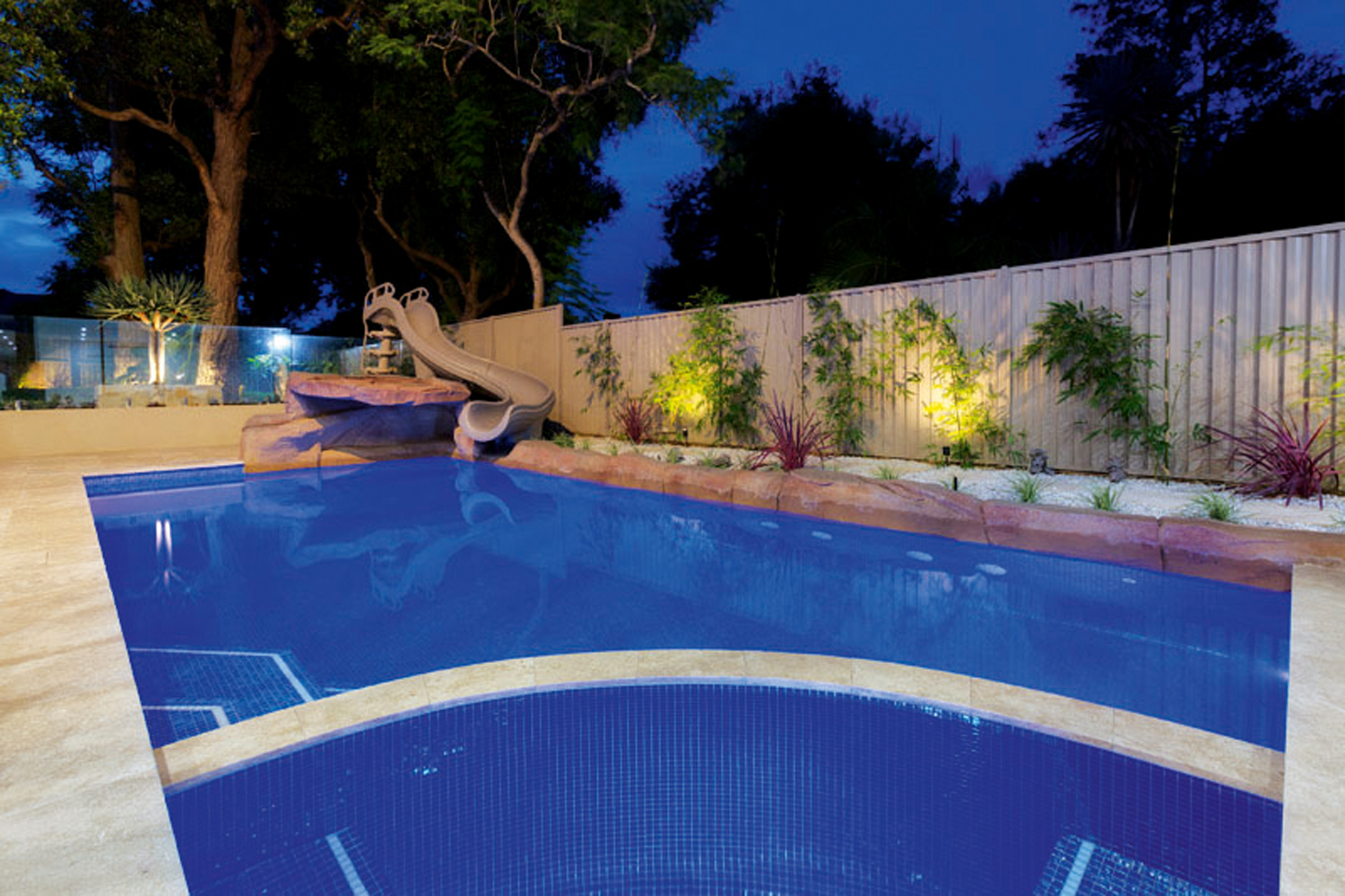 “It really has something for everyone,” says Gavin. “There’s a spa that both the adults and kids can enjoy, and an amazing fake rock water feature that is great for the kids to jump off or swim underneath. The fun doesn’t stop there, however, as there’s also a fantastic waterslide that will keep the kids entertained for hours.”