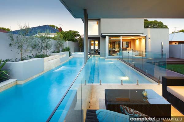Pool design with glass fencing