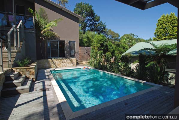 The clients wanted to make use of the entire property and turn the most difficult of landscapes into a family-friendly entertainment area. A pool was a must, as was a spacious lounge area — and with a soccer-mad son, they also required room for him to run around.