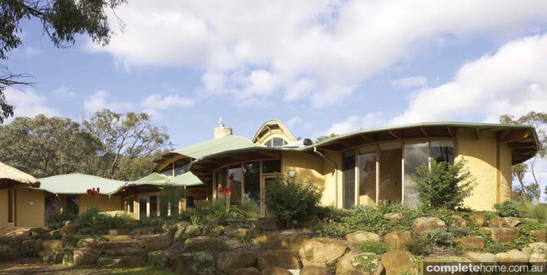The home of Wayne Lascelles is built from mud brick, rammed earth, local stone and timbers.