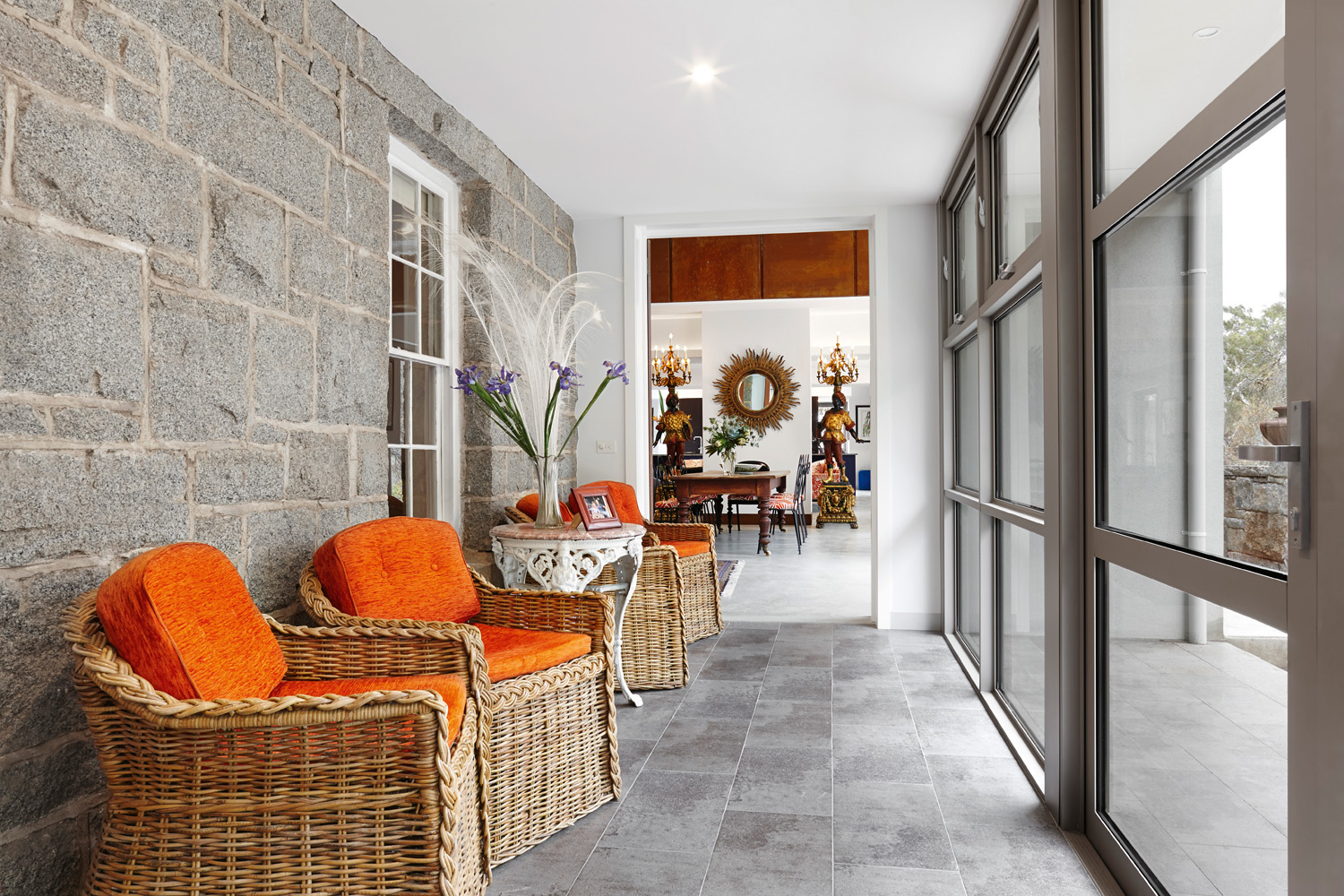 As the build progressed, the sale of Ravenswood Homestead fell through, despite a large number of interested parties. “The day of the auction, everyone kept their hands in their pockets and we didn’t get what we wanted to achieve,” says Art. It was then decided Troy would return to the bed and breakfast while Art spent his days on-site at Harcourt, labouring away to cut mounting costs. Thanks to the natural resource just steps away from their build, Troy and Art were able to use their own granite on the lower-ground pillars and in the foyer of the home. Self-rusting Corten steel was also employed, adding to the rustic look of the residence.