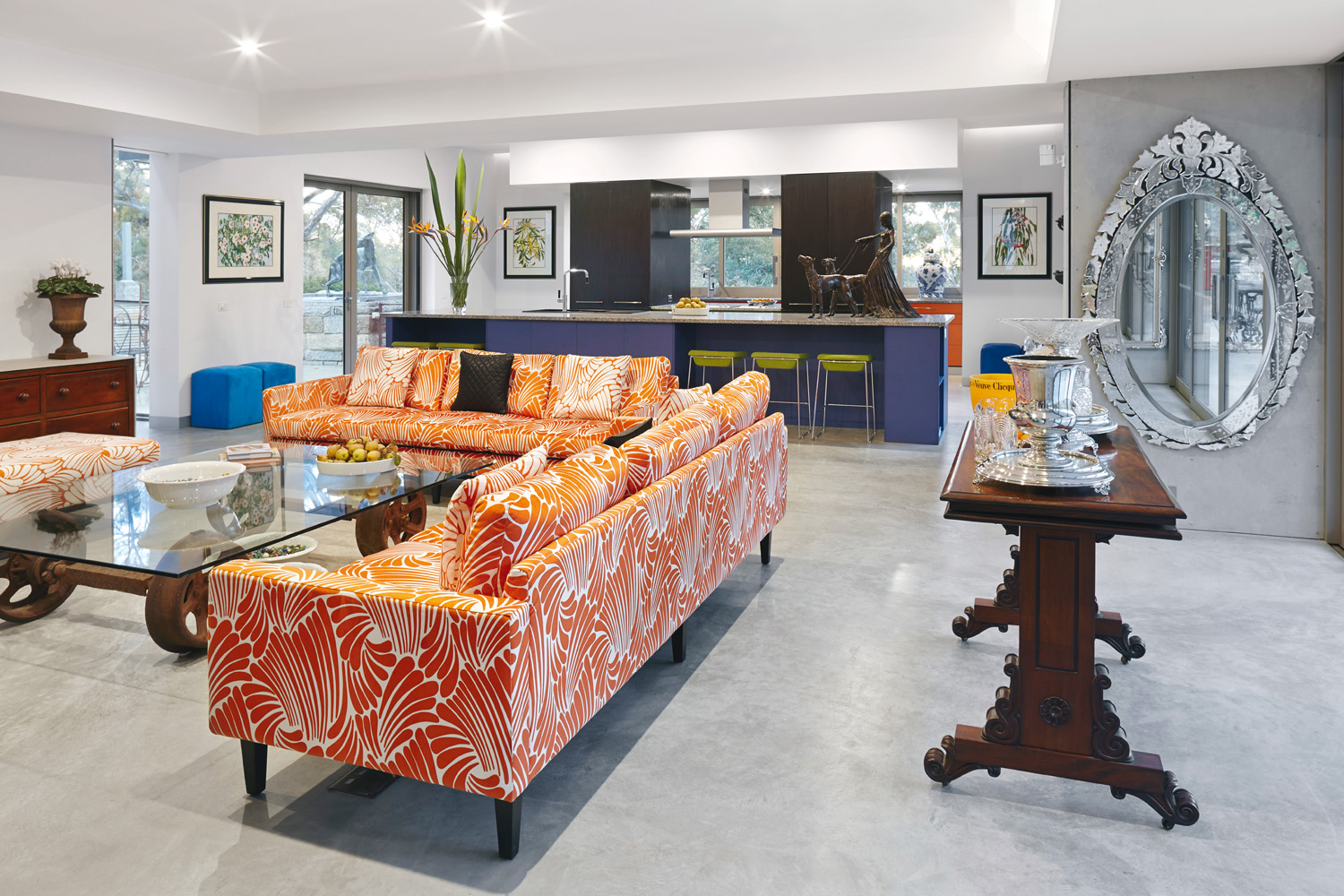 The plan was to build the new house between the two old remnants left behind, one of which was a worker’s cottage. “We have come from a very old Georgian-style home,” says Troy. “Everything here had to be the opposite.” Designed by Art, the concept revolved around designating the old structure as the guest quarters and the new space containing one huge living area and one bedroom on the upper storey. “I can visualise a lot of it, but I think it is going to be learning as we do it — as it is the unknown,” admits Art. By August 2013, the demolition of the 1980s cottage extension was completed and the foundations were laid. As concrete was used to join the new and old structures together, Peter Maddison became concerned about the original structures’ integrity, but was reassured by Art that they were “solidly built” and “as good as it gets”.