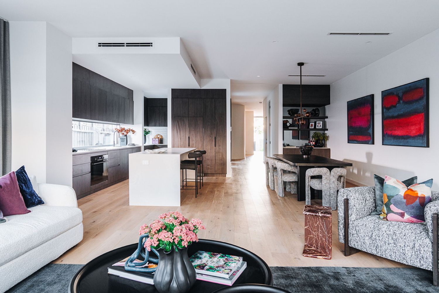 The newest dual occupancy by Carter Grange radiates sophistication, featuring a breathtaking exterior that reflects the exceptional architectural design and meticulously chosen materials throughout the property.