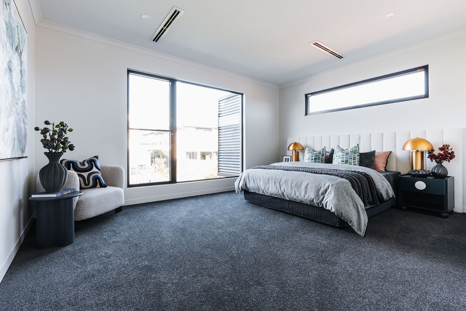 Commercial Series Awning Windows are also present in bedrooms three and four, along with their ensuites, where they enhance the influx of natural light, creating a spacious and airy feel while supporting controlled ventilation year-round.