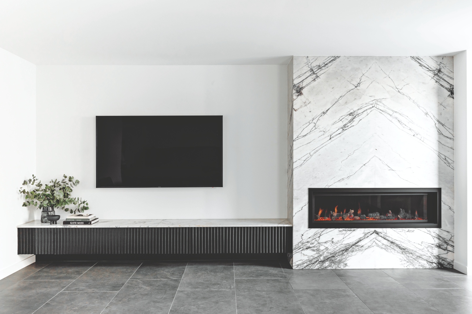 Chris adds there is a revival in squared-format fireplaces and more traditional formal designs in keeping with popular Hamptons styling. “Over recent years, sleek linear or landscape fireplaces have dominated designs and while still popular, traditional fireplaces with mantlepieces have made a comeback,” he says.