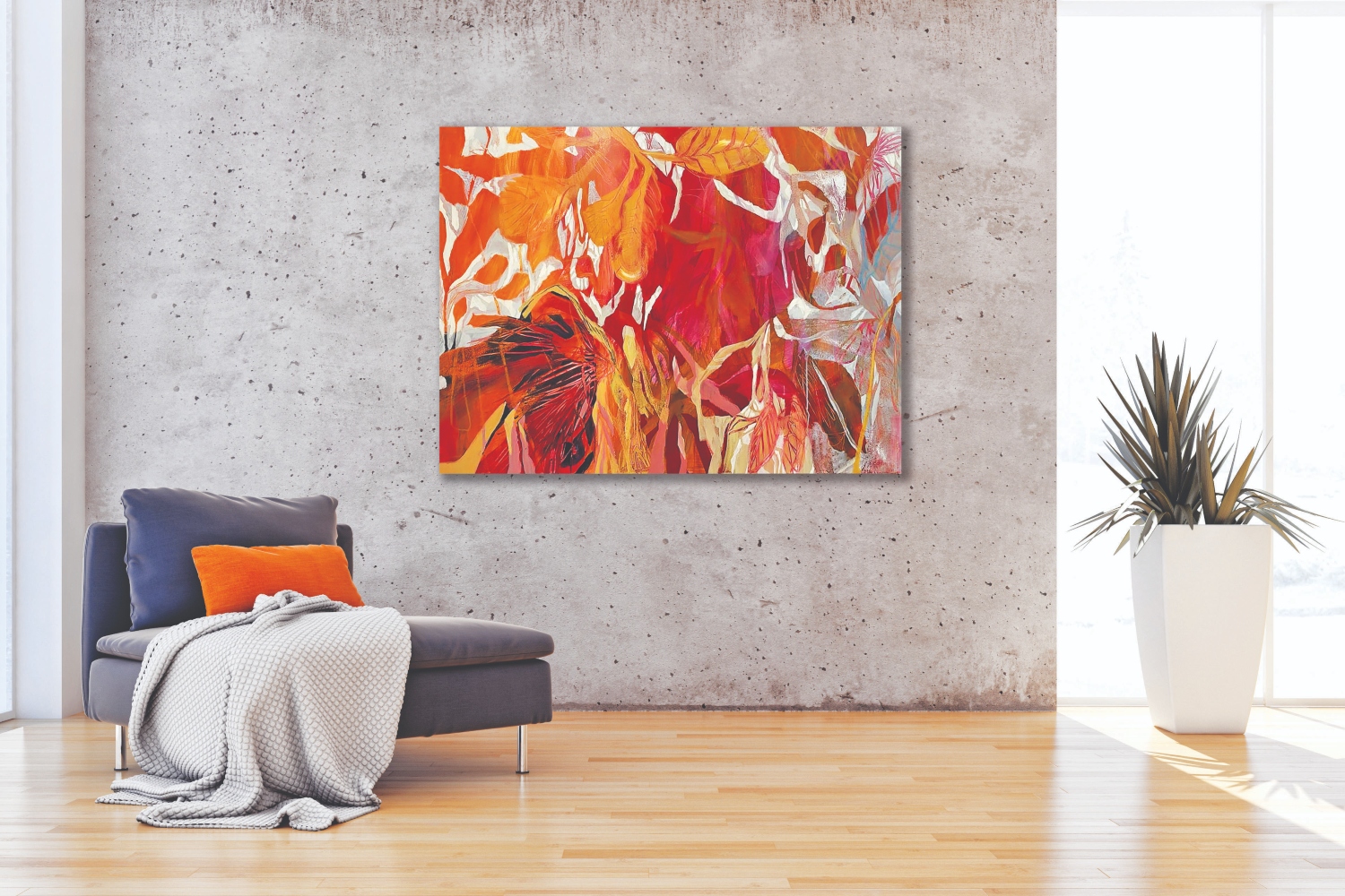 Another tip: lighten up a dark corner with a bold artwork; adding colour infuses warmth. A winter centrepiece, crafted with natural materials, also creates a warming vibe to