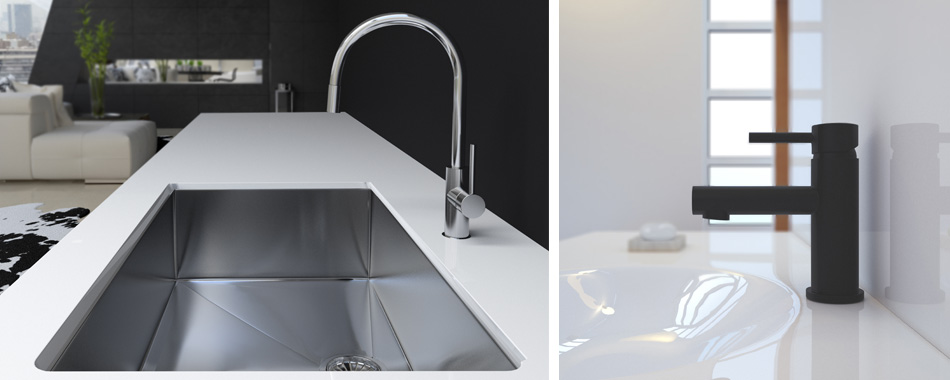 Using white two-pack gloss on the cabinet doors and the Shannon Oak sheen achieve a fresh feel that looks fantastic next to the CaesarStone benchtop.