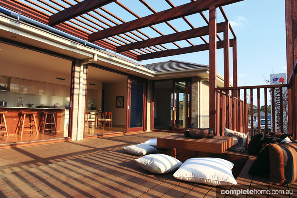 “The house was located on a corner block with a secondary frontage that had an elevated and steeply sloping westerly aspect, so a lot of thought was required,” says Adrian. “To ensure maximum privacy without making the space feel hemmed in, we created extensive decking, screen fencing, and highly functional inbuilt furniture.”