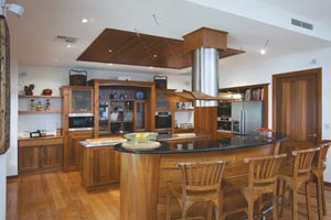 Wanting to bring a little of the tropics into their new home, the owners of this dazzling kitchen decided that the hub of the home was the best place to start. Because the kitchen was to have a large family to cater for, the design needed to incorporate different zones so more than one person could cook simultaneously. Aesthetic qualities were also an important part of the client brief, as the kitchen is on display from most of the ground floor. As it was vital that the kitchen look good while performing highly on the practicality scale, the clients are very happy with this impressive outcome.