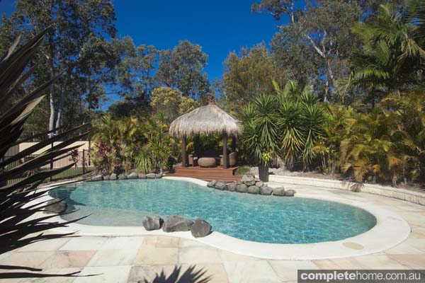 When award-winning wedding photographer Paula Gray and her husband, Leigh, were planning the landscaping for their new home in southeast Queensland, they decided on a tropical style for their garden, with a pool, lush plantings and a thatched Balinese-style cabana.