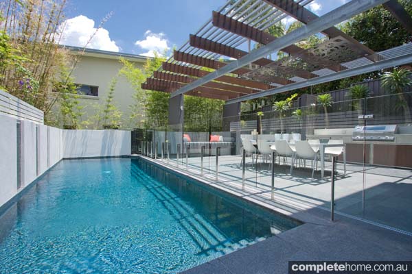 The featured pool was constructed by D Pearce Constructions in Brisbane. The black granite was chosen for its visual appeal as it suited the contemporary colour palette desired by the owners for their inner-city oasis. Granite was also chosen as custom sizes were required to maximise the aesthetics of the project. The Pool Tile Company services the whole of Australia from its Brisbane base so it is able to send a variety of samples free of charge to customers unable to visit their showroom. Sydneysiders are now able to have the company’s experienced colour consultants visit their home with samples for a free consultation.