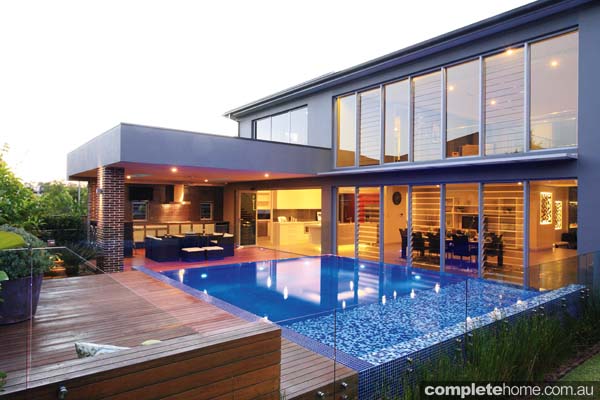 Says Adrian Swain, ecodesign’s head designer: “We were asked to create a landscape in which the outdoor entertaining area and swimming pool linked seamlessly with the home. This required us to co-ordinate our work with the project architect, interior designer, home builder and, of course, the pool builder.